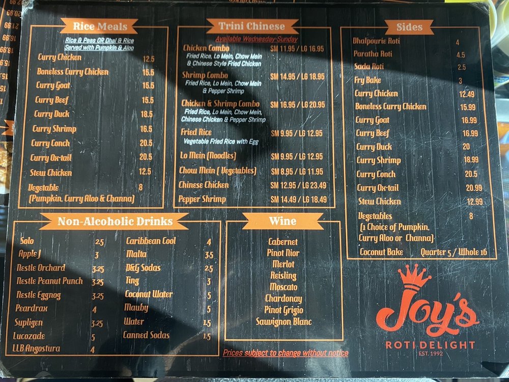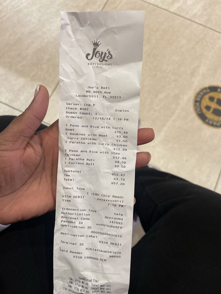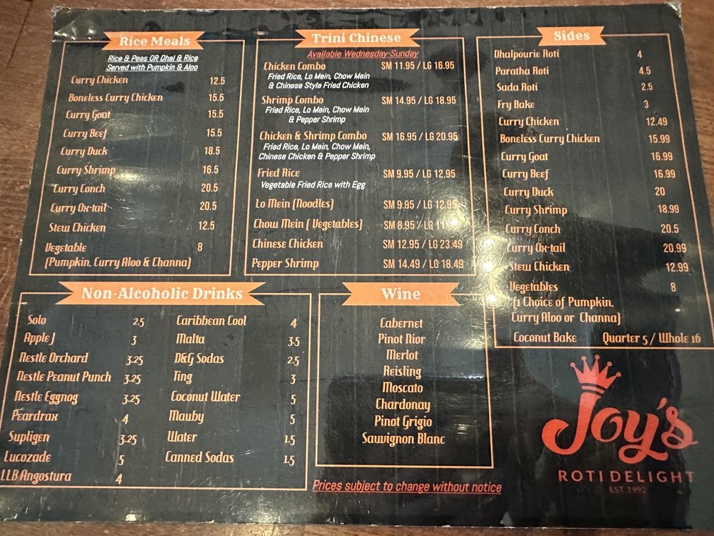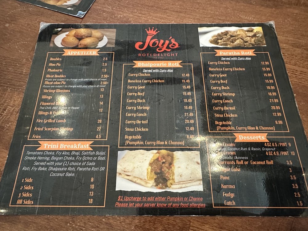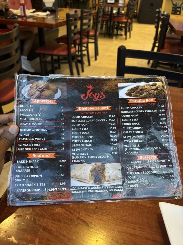 Joy's Roti Delight, located in Lauderhill, FL, offers a true Caribbean bar vibe with live DJs and a lively atmosphere. The menu boasts a variety of authentic West Indian dishes, including boneless curry chicken, ox tail stew, and shrimp curry. Customers rave about the flavorful meals, with standout items like paratha and curry shrimp with potatoes receiving high praise. The friendly staff, relaxing environment, and excellent service make dining at Joy's Roti Delight a memorable experience. The restaurant's commitment to providing a taste of the islands is evident in every dish, transporting diners back home with each bite. Whether you're a fan of Trini cuisine or simply looking to try something new, Joy's Roti Delight is a must-visit for those craving authentic Caribbean flavors.